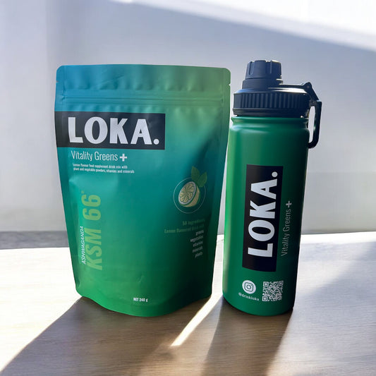 LOKA Vitality Greens+ Bundle – Superfood Powder + Bottle + Mushroom Tincture