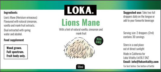 LOKA Lions Mane Tincture – Cinnamon, Vanilla & Monk Fruit – 59ml